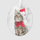 Weihnachtskatze an roter Sankt Hut nahe Ornament