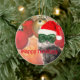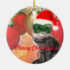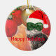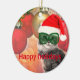 Weihnachtskatze auf Weihnachtskugel-Hintergrund Keramikornament