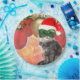 Weihnachtskatze auf Weihnachtskugel-Hintergrund