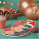 Weihnachtskatze auf Weihnachtskugel-Hintergrund Pappteller