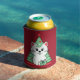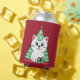 Niedliche weiße Weihnachtskatze posiert mit Weihnachtsbaum und Weihnachtsgeschenk