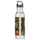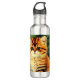 Wasserflasche mit einer Weihnachtskatze aus Jahrgang! Eine orangefarbene Kätzin mit schwarzen Streifen sitzt im Schnee. Hinter der Katze steht ein Weihnachtsbaum mit roten und gelben Ornamenten. Auch auf dem Schnee ist ein rotes Geschenk. Ein perfektes Geschenk für die Weihnachtszeit und Katzenliebhaber!