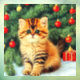 Fensterklammer mit einer Weihnachtskatze aus dem Jahrgang! Eine orangefarbene Kätzin mit schwarzen Streifen sitzt im Schnee. Hinter der Katze steht ein Weihnachtsbaum mit roten und gelben Ornamenten. Auch auf dem Schnee ist ein rotes Geschenk. Ein perfektes Geschenk für die Weihnachtszeit und Katzenliebhaber!