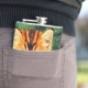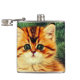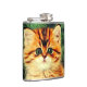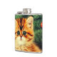 Flasche mit einer Weihnachtskatze aus Jahrgang! Eine orangefarbene Kätzin mit schwarzen Streifen sitzt im Schnee. Hinter der Katze steht ein Weihnachtsbaum mit roten und gelben Ornamenten. Auch auf dem Schnee ist ein rotes Geschenk. Ein perfektes Geschenk für die Weihnachtszeit und Katzenliebhaber!