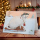 Feiern Sie die Winterzauber mit dieser bezaubernden Karte mit einer weißen Katze in einem gemütlichen Strick, der auf einem Schlitten durch eine verschneite Landschaft reitet. Ideal für Feiertagsgruß, die Wärme und Feierlichkeit bringen.