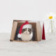 Niedliche Katze mit einem Weihnachtshut in einem generischen Karton. Alle Texte können geändert werden.