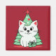 Niedliche weiße Weihnachtskatze posiert mit Weihnachtsbaum und Weihnachtsgeschenk
