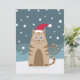 Weihnachtskatze mit Weihnachtsmannmütze in Schneew Karte