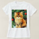 T - Shirt mit einer Weihnachtskatze im Jahrgang! Eine orangefarbene Kätzin mit schwarzen Streifen sitzt im Schnee. Hinter der Katze steht ein Weihnachtsbaum mit roten und gelben Ornamenten. Auch auf dem Schnee ist ein rotes Geschenk. Ein perfektes Geschenk für die Weihnachtszeit und Katzenliebhaber!