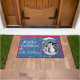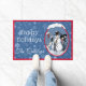 Eine charmante kleine Szene empfängt Ihre Gäste, in der vier lustige liebende Katzen sich am Vorabend des Winters mit einem Schneemann erfreuen. Vintages bundesstaatliches Blau mit Schneeflocken umgibt eine ovale Vignette mit dieser niedlichen Katzenillustrierung. Personalisieren Sie diese festliche, saisonale Begrüßungsmatte für Ihre Zuhause oder als Geschenk.