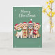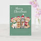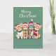 Feiern Sie den Urlaub mit einer fröhlichen Weihnachtskarte, die eine Gruppe von bezaubernden Katzen in Weihnachtsmannmützen vor einem grünen Hintergrund zeigt. Ideal für Liebhaber von Haustieren.