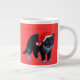Weihnachts-Jumbo-Tasse zum Verkauf. Weihnachts-Katze "Tuxedo" schwarz-weißes Kätzchen auf rotem Hintergrund auf 20 Unces Jumbo Tasse. Verfügbare kleine Größen. Geschirr. Service.