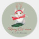 Ein schöner Aufkleber mit einer stylischen grauen und weißen Weihnachtskatze auf staubgrünem Hintergrund. Original-Kunstwerk von Caroline Bonne Müller.