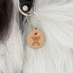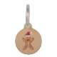 Desteis festliche Illustration eines braunen Farb-Lebkuchen mit einer Weihnachtsmannmütze und einem roten Bogen. Die Hintergrundfarbe ist hellbraun. Auf der anderen Seite gibt es zwei personalisierbare Textbereiche.