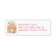 Auf diesem Adressetikett befindet sich ein Lebkuchenhaus, das mit rosa und aqua-Bonbons dekoriert ist.