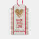 Süßes Leckerei zu backen macht während der Ferienzeit so viel Spaß. Dieses gemütliche und lässige Design nimmt einen dreidimensionalen Look mit einem Foto eines dekorierten Herzkuchens auf cremefarbenem Hintergrund auf, das auf jeder Seite mit einem rot-grünen Weihnachtsgeschenk kariert betont wird. Legen Sie unten Ihren eigenen, benutzerdefinierten Text mit den einfachen, bereitgestellten Vorlagen. Auf der Rückseite befindet sich ein koordinierendes Rot, verstreut mit handgezeichnetem fallendem Schnee. Bitte besuchen Sie mein Geschäft für weitere koordinierende Artikel in der 'Backbricks Bright' Kollektion!