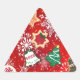 Weihnachtskekse und Schneeflocken auf Rot Dreieckiger Aufkleber