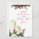 Weihnachtskerzen im Wasser Berries Pine Cones Holiday Card. Weiße Kerzen mit holzroten Beeren, Blätter und Kiefernzapfen. Schöne handgeschriebene Typografie. Personalisieren Sie es mit Ihrer Nachricht und Ihrem Familiennamen.