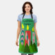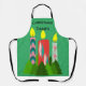 Diese Schürze hat ein Weihnachtsdesign aus Kerzen, die aus Rechtecken bestehen, die mit Sternen, Ovalen oder Diamanten geschmückt sind, die um den Boden gruppiert sind.