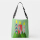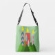 Diese Tasche hat ein Weihnachtsdesign aus Kerzen aus Rechtecken mit Sternen, Ovalen oder Diamanten mit Bäumen um den Boden gruppiert.