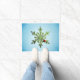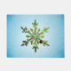 Weihnachtsmatte mit einer Collage, die eine schöne Schneeflocke aus Kiefernästen darstellt. Ein roter Weihnachtsball hängt an einem der Kiefernäste.