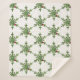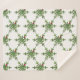 Weihnachtsdecke mit einer Collage, die eine schöne Schneeflocke aus Kiefernästen darstellt. Ein roter Weihnachtsball hängt an einem der Kiefernäste.