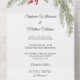 Mit dieser exquisiten All-in-One Weihnachts-Einladung, die den fröhlichen Geist der Urlaubssaison in Ihren besonderen Tag einfließen lassen soll. Mit eleganten Kiefernspießen und roten Beeren vereint diese Einladung das Wesen einer winterlichen Hochzeit. Die All-in-One Hochzeitseinladungen sind schön und praktisch, indem sie die Hochzeitseinladung mit einer leicht zu entfernenden perforierten UAWG-Postkarte kombinieren. Sie sind auch schnell und einfach für den Versand vorbereitet. Einfach auf die Einladung richten, die Rückenklappe und das Siegel mit den beiliegenden Klarsichtstickern falten. Sobald Ihre Gäste die voradressierte Einladung erhalten, reißen sie einfach die perforierte RSVP-Karte ab und lassen sie in der E-Mail ablegen.
