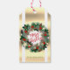 Dieses elegante Geschenktag mit einem luxuriösen Weihnachtskranz auf einem modernen, hellen goldenen Hintergrund mit weißen Bands. Der Kranz ist mit Kiefernzapfen, heiligen, roten und weißen Bausteinen, goldenen Sternen und Schneeflocken dekoriert. Sehr fröhliche Dekoration mit dem Text Frohe Weihnachten und dem heutigen Absender Name zu anpassen. Frohe Weihnachten!