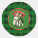 Weihnachtskinder auf Grün Kariert Runder Aufkleber