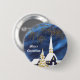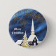 Vintage Szene einer Kirche mit Turm, bedeckt mit Schnee in einer mondbeschienenen Nacht mit funkelnden Zweigen im Vordergrund auf diesem Weihnachtsknopf.