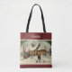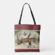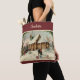 Einfach Tasche anpassen, einfach Ihren Namen hinzufügen! Vintage Abbildung Viktorianisches Weihnachtsbild mit einer schönen Kirche mit Buntglasfenstern bei Sonnenaufgang am Weihnachtsfeiertag. Die Parisonisten gehen im Schnee, um zur Morgendämmerung oder "Schäfermesse" zu gehen