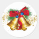Dieser große Rundaufkleber wird mit einem festlichen Goldglockenprint für Weihnachten gezeigt. Passen Sie dieses Objekt an oder kaufen Sie, wie es ist.