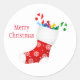 Dieser große Rundaufkleber wird mit einem niedlichen Weihnachtsfeiertag-Strumpf mit Leckereien gedruckt. Passen Sie dieses Objekt an oder kaufen Sie, wie es ist.