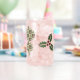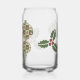 Vier Plätze in Grün und Bräune sind mit roten Ornamenten verziert, die mit weißen Schneeflocken und grünen Heiligen mit roten Beeren dekoriert sind. Weiße Nähte fügen eine dekorative Touch hinzu, die dem sich wiederholenden Muster das Aussehen eines Stepps verleiht und ein sehr gemütliches Gefühl für den Weihnachtsurlaub schafft. Die Form eines Teardrop-Ornaments bildet eine Maske für das Design, um eine letzte saisonale Touch hinzuzufügen. Diese Glaswaren sind auch in stilechtem Glas und Steinen erhältlich.