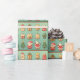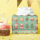 Lassen Sie Ihre Geschenke in festlichem Beifall mit unserem köstlichen Geschenkpapier, das mit schönen Weihnachtskeksen geschmückt ist, mit Weihnachtsmann, Frau Claus, Häusern, Stars und köstlichen Leckereien, alles Set vor einem lebendigen grünen Hintergrund.