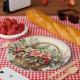 Weihnachtskorb mit Poinsettia-Blume, Beeren Pappteller