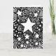 Eine Weihnachtskarte mit einem stylised Schwarzweiss-Zeichnen eines Kosmos mit Sternen, Galaxien, Planeten im Strudelfluß von Schwerkraft und Raumzeitkontinuum. "Frohe Weihnachten und glückliches neues ein Jahr" geschrieben nach innen in einen Skript-Schriftart (das Mitteilungsinnere kann besonders angefertigt werden).