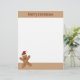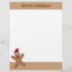 Desteis festliche Illustration eines braunen Farb-Lebkuchen mit einer Weihnachtsmannmütze und einem roten Bogen. Oben und unten haben braune Farbränder. Es gibt auch einen personalisierbaren Textbereich, der jetzt lautet: "Frohe Weihnachten".