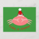 Diese Postkarte zeigt ein lustiges grafisches Design-Bild einer Krabbe mit einer Weihnachtsmannmütze. Die Krabbe ist rosa und hat große alberne Augen auf Stalks und riesige pinchy Klauen. Ein lustiges Geschenk für jeden, ob Weihnachten macht sie verrückt oder nicht