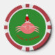 Dieses phantastische Set von Poker-Chips zeichnet sich durch ein lustiges grafisches Design-Bild einer Krabbe mit einer Weihnachtsmannmütze aus. Die Krabbe ist rosa und hat große alberne Augen auf Stalks und riesige pinchy Klauen. Ein lustiges Geschenk für jeden, ob Weihnachten macht sie verrückt oder nicht
