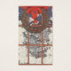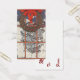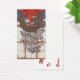 Vintage Illustration Frohe Weihnachts Weihnachtszeit Landschaft Design. Eine Schneeszene mit Blick auf Schneebäume im Wald und ein Haus in der Ferne durch ein 9-Fenster mit einem Kiefernkranz mit einem roten Bogen. Ein architektonisches Element.