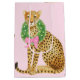 Diese Weihnachts-Geschenktasche zeigt einen Leoparden, der einen Kranz mit einer rosa Schleife trägt.
