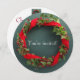 Feiertagsdekoration mit frischem Efeu und roten Beeren auf Grün