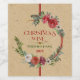Farbenfroher Weihnachtsblumenkranz, moderne Typografie-Weihnachtswein- und beige Karton Papier Textur Hintergrund. Dunkelroter und grüner Akzent.