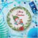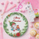 Genießen Sie den Weihnachtsmann mit einem Weihnachtsbaum und Weihnachtsgeschenken mit einem Rahmen aus Tannen, Kiefernzapfen und roter Poinsettia