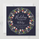Dieses schicke Urlaubsprojekt besticht durch einen eleganten, blumengeschmückten Wasserfarbenwald auf marineblau-blauem Hintergrund. Fügen Sie im Kranz Ihre personalisierten Informationen für Ihre Weihnachtsfeiertage-Party Einladungen hinzu. Bearbeiten Sie den Text einfach in den dafür vorgesehenen Textfeldern. #christmas #holidays #saisononal #festive #floral #botanical #woodland #nature #birds #candycanes #house mushrooms deer #reindeer #schnee #snowflakes #christmatrees #moderne #chic #corporate #invitations #calls #calls #christmasinvitations #christmasamps #corporatechristmasparty #holidaybrunch #stunch #stils ##elegant #christmasdinner #brunch #christmasparty #Party #red #green#white #vyblue