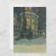 Vintage Illustration Frohe Weihnachtsfeiergestaltung mit architektonischem Schnee im Winter. Die Vorderseite eines schneebedeckten Hauses mit Weihnachtskränzen in den Fenstern.