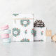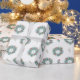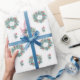 Elegantes handillustriertes Verpackungspapier mit Rentiermotiven und Weihnachtsdünen mit Beeren, Blätter und Eukalyptusblättern.