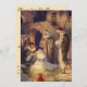 Vintage Illustration Weihnachtsfeiertag religiöses Bild mit einer klassischen Krippe. Eine Christliche religiöse Familienszene mit Maria, Joseph, dem Säugling Jesus Christus in der Leitung und den drei weisen Männern in Bethlehem. Die drei Hirten und Jesus.