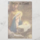 Vintage Illustration religiöses Weihnachtsbild mit klassischer Krippe. Eine Christliche religiöse Familienszene mit Maria, Joseph und dem Säugling Jesus Christus im Manger in Bethlehem. Künstler: Hy Hintermeister.
